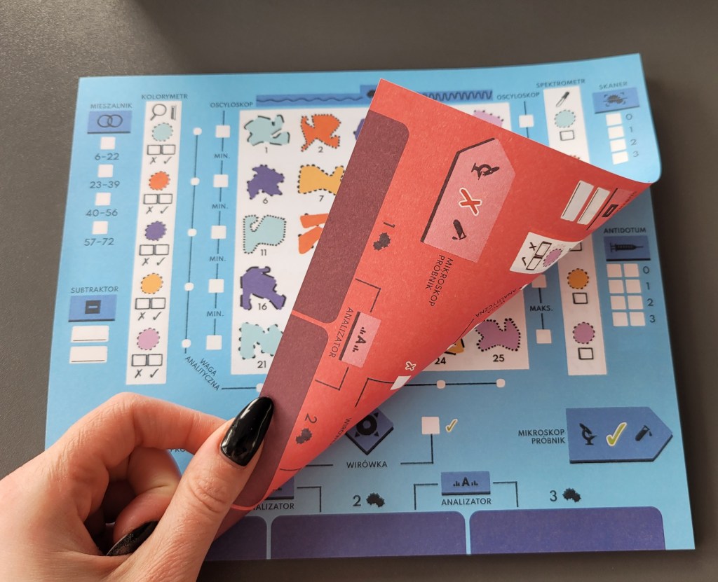 Wydawcy całe szczęście nie zostawiają graczy na lodzie i na swoich stronach przy danych grach umożliwiają pobranie pdfa z planszą. I tu pojawiają się 2 problemy. Po pierwsze, plansze są przeważnie kolorowe (dopiero raz widziałam dwie opcje – kolorową i same czarno-białe kontury) co powoduje, że zmarnujemy masę tuszu na drukowanie i to zakładając, że mamy własną drukarkę. Zmiana opcji wydruku na czarno-białe dalej nam nie pomoże – plik zostanie wydrukowany w odceniach szarości z tłami i innymi obrazkami, które nie potrzebują kolorów. Do tego im częściej gramy tym więcej musimy drukować. Po drugie, nie da się zamówić pojedynczych bloczków, widziałam tylko opcje zamówień hurtowych (jeśli się mylę i jest taka opcja to dajcie znać w komentarzach).