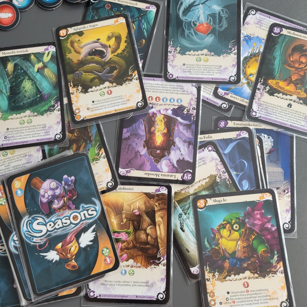 Łatwe do przyswojenia zasady sprawiają, że „Pory Roku” fajnie się przedstawia nowym graczom. Jedyną trudnościa może być nieznajomość właściwości kart – tu jednak można w czasie szykowania gry pozwolić na przejrzenie talii kart Mocy i rzucenie okiem na dostępne bonusy lub podać instrukcję zawierającą opisy kart. Mechanika draftu w pierwszej fazie również pomaga, bo umożliwa bliższe zapoznananie sie z niemal wszystkimi kartami jakie na początek wezmą udział w rozgrywce – piszę na początek bo karty można dobierać w trakcie gry. Trzeba jednak pamiętać, że te niewykorzystane na koniec odejmą nam po 5 punktów za kartę!