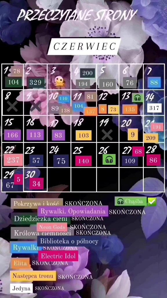 Zaczęłam również „Bibliotekę o północy” oraz drugą część „Neon Gods”, czyli „Electric Idol”, ale że żadnej z nich nie udało mi się skończyć w czerwcu na kilka słów o obu będziecie musieli poczekać co najmniej do dedykowanego im posta lub jeśli wolicie maksymalne streszczenia to do podsumowania lipca.