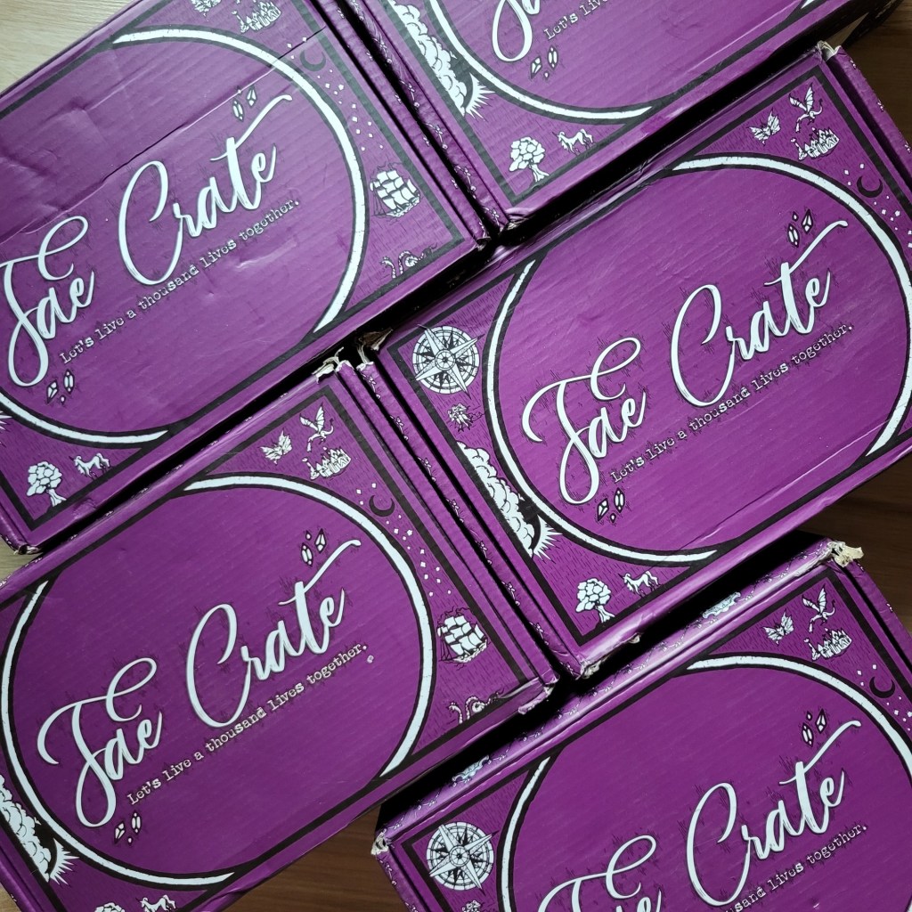 Fae Crate to serwis ze Stanów Zjednoczonych oferujący jedną subskrypcję (YA fantasy i sc-fi) w trzech wariantach – sama koszulka, box – książka z gadżetami oraz box – książka, gadżety i koszulka.