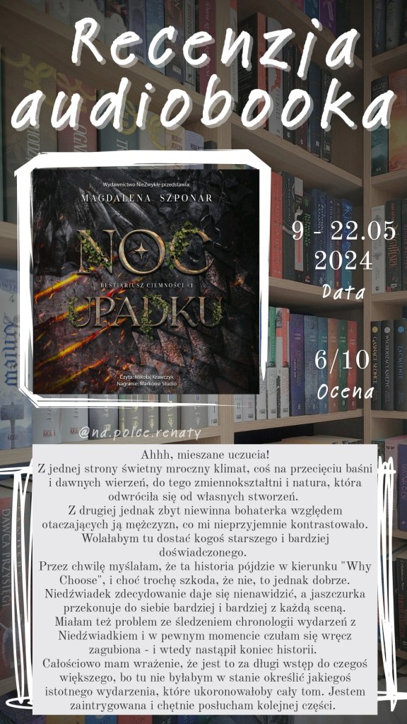20 września 202420 września 2024 Renata Foremny Noc Upadku – Magdalena Szponar „Noc Upadku” – Magdalena Szponar„Bestiariusz ciemności” tom1Wydawnictwo NieZwykłeLektor Mikołaj Krawczyk Udostępnij:TweetLubię Wczytywanie… Powiązane