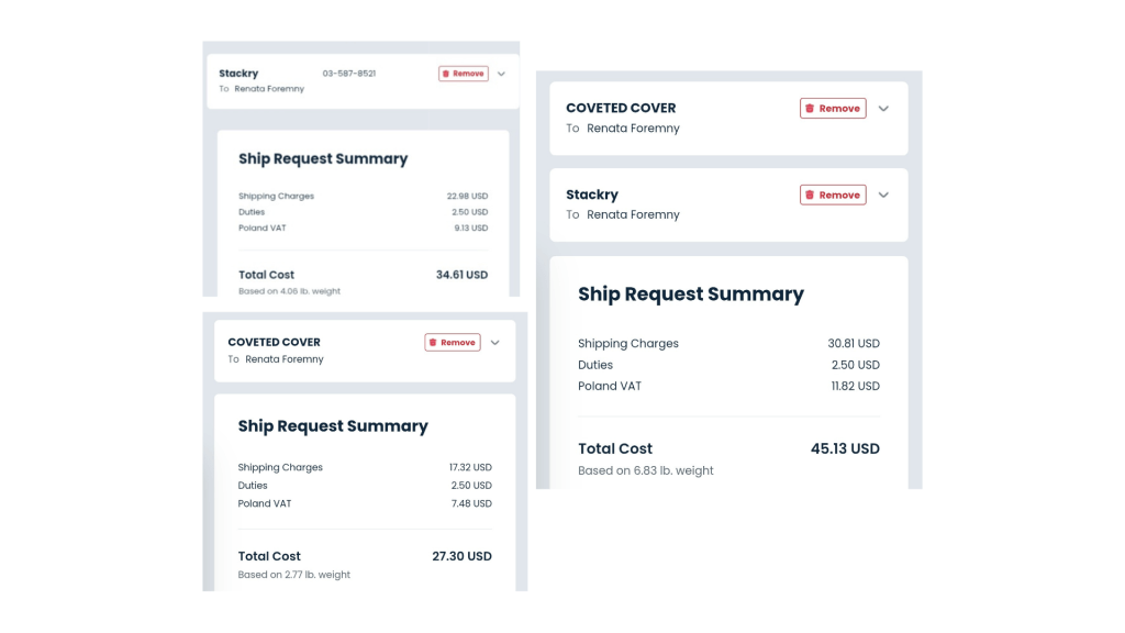 Wiedząc, że przesyłka tej paczki z MyUS do Polski będzie mnie kosztować jakieś 30 dolarów, całość i tak wyniosła mnie niemal połowę taniej niż to, co oferował Stackry. Więc tak zrobiłam — nadałam paczkę do MyUS. Mistrzyni oszczędności 🤦♀️